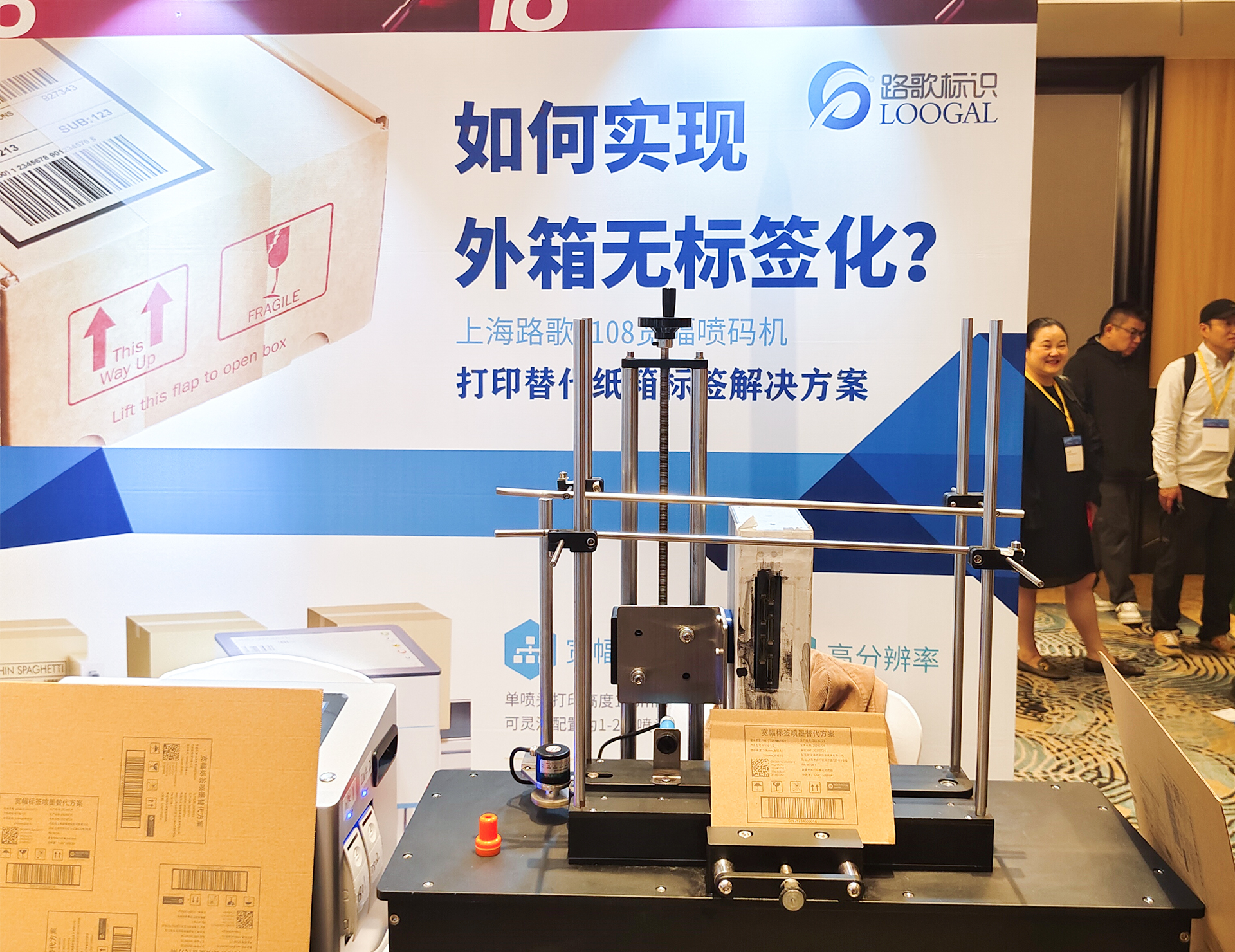 在論壇現(xiàn)場(chǎng),路歌標(biāo)識(shí)的新品W108寬幅噴碼機(jī)吸引了眾多觀眾的目光。